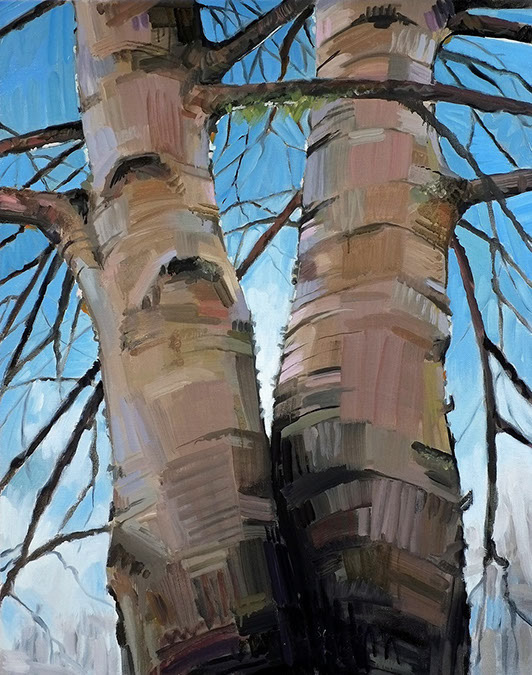 Björkar 2018 56 x 65 cm. Olja på duk. Privatägd i Delsbo.